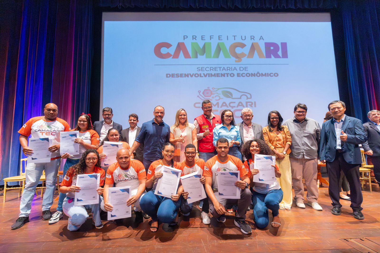 A Prefeitura de Camaçari celebrou, na noite desta segunda-feira (2), a certificação de 188 profissionais formados pelo programa Camaçari TEC, iniciativa coordenada pela Secretaria de Desenvolvimento Econômico (Sedec). A solenidade ocorreu no Teatro Cidade do Saber (TCS) e reuniu autoridades municipais, representantes do setor produtivo e familiares dos concluintes, marcando mais uma etapa da política pública de qualificação voltada ao fortalecimento do setor automotivo no município.