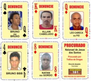 Através do Baralho do Crime o cidadão pode conhecer os rostos dos criminosos mais perigosos do estado. Quem tiver informações sobre os suspeitos podem fazer denúncia anônima através do Disque Denúncia, nos telefones 3235-0000 (capital e RMS) e 181 (interior). A identidade do informante é mantida em sigilo.