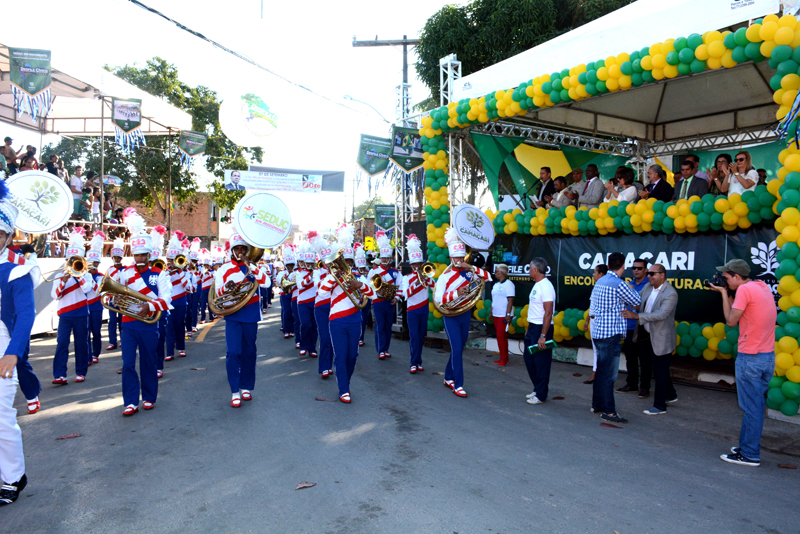 Os soldados do Tiro de Guerra fizeram a abertura do desfile cívico, seguidos dos agentes da STT (Superintendência do Trânsito e Transportes). A animação ficou por conta da Bamuca (Banda Municipal de Camaçari), Fanesc (Fanfarra Estudantil de Camaçari), Fanpop (Fanfarra Popular de Parafuso) e Fanesp (Fanfarra Estudantil de Parafuso), responsável por encerrar os atos cívicos em Camaçari.