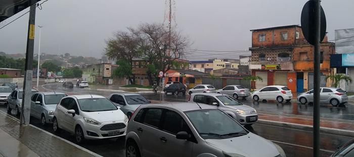 Estamos no outono, mas a quinta-feira (19) em Camaçari amanheceu com cara de inverno. Para não se molhar, o famoso casaco e a sombrinha que tinha algum tempo sem utilizar, foram acessórios necessários ao sair de casa.