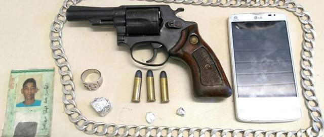 Com Jackson a polícia apreendeu um revólver com três munições intactas, cinco gramas de crack, duas pedras de crack, uma corrente e um anel de prata.