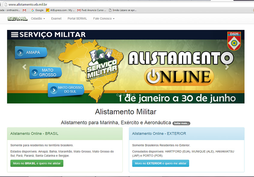 Iniciado no último dia 02 de janeiro, o alistamento militar é realizado de forma online, no endereço eletrônico www.alistamento.eb.mil.br. Após o dia 15 de julho de 2016, no mesmo site, será divulgada a situação militar e o local e o dia quando o jovem deve se apresentar. Aqueles que não conseguirem se alistar até dia 30 de junho, podem realizar o procedimento até dezembro, mediante pagamento de multa.