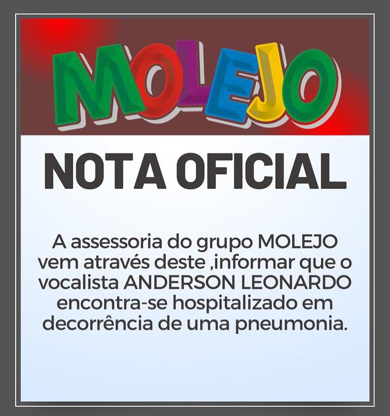 “O vocalista Anderson Leonardo encontra-se hospitalizado em decorrência de uma pneumonia. Contamos com as orações de todos os amigos e fãs, e esperamos que muito em breve ele esteja de volta aos palcos levando a sua alegria contagiante”, diz o comunicado.