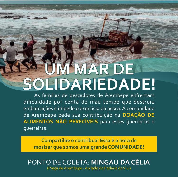 Após a força do mar destruir parte da estrutura de bares, restaurantes e hotéis, e algumas embarcações em Arembepe e Jauá, orla de Camaçari, o Conselho de Direitos e o Conselho Tutelar montaram um esquema para arrecadar alimentos não perecíveis para as famílias de pescadores que tiveram barcos destruídos pela ressaca do mar.