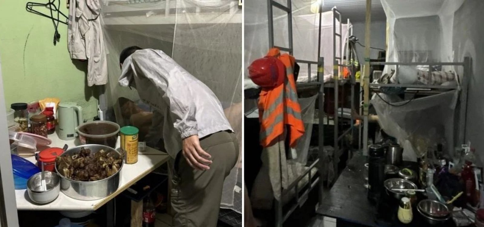 • A fiscalização também comunicou ter encontrado refeitório sem condições mínimas de higiene, banheiros químicos insuficientes e em estado deplorável, exposição à radiação solar sem proteção, além do registro de acidentes recorrentes devido às condições de alojamento e jornadas exaustivas: