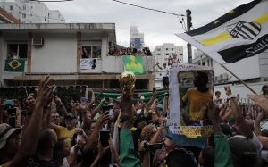 Durante a celebração da missa católica no encerramento do velório ainda na Vila Belmiro, foi dito que Dona Celeste não tem plena noção da morte do filho. Em frente à casa da família, no Canal 6, milhares de pessoas se aglomeravam para acompanhar o cortejo. Uma bandeira com os dizeres “Pelé Eterno” decorava uma das janelas da casa.