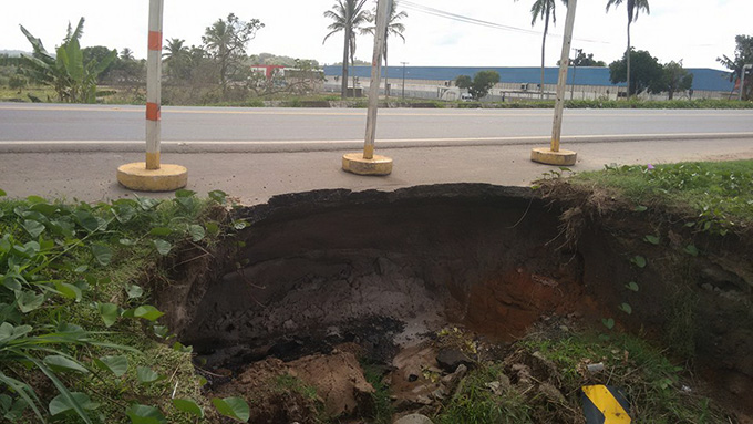 Após a forte chuva que atingiu a cidade nesses últimos dias, uma parte do acostamento da via cedeu, e por causa da erosão uma cratera foi aberta na pista. O trecho está sinalizado, mas até o momento a concessionária Bahia Norte, responsável por administrar a estrada, não enviou equipes para realizar o reparo.