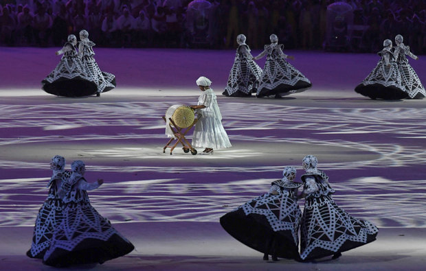A Bahia foi representada na cerimônia – que durou cerca de duas horas e meia – pela cantora Mariene de Castro interpretando Pelo Tempo que Durar, de Marisa Monte e Adriana Calcanhoto, e também pelas Ganhadeiras de Itapuã. O grupo de samba de roda entoou Mulher Rendeira, enquanto uma trama da arte centenária surgia no centro do gramado. O momento foi aplaudido de maneira inusitada pela delegação da Grã-Bretanha, que usou tênis com luzes de LED para as palmas.
