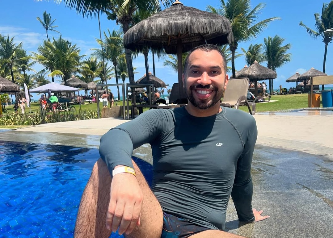 De férias na Bahia, o ex-BBB e economista Gil do Vigor está curtindo bastante os dias de descanso. Hospedado no Vila Galé Marés, em Guarajuba, o economista tem aproveitado o tempo livre para descansar.