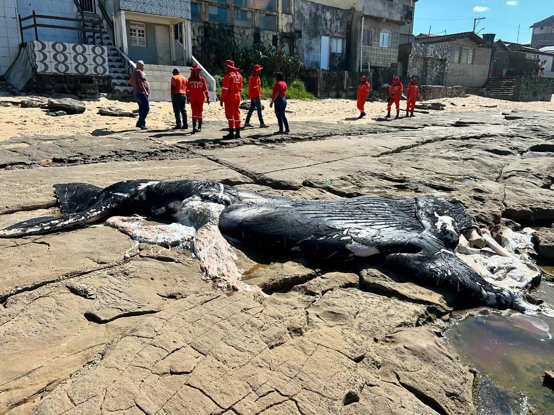 Defesa Civil remove corpo de baleia-jubarte em Camaçari