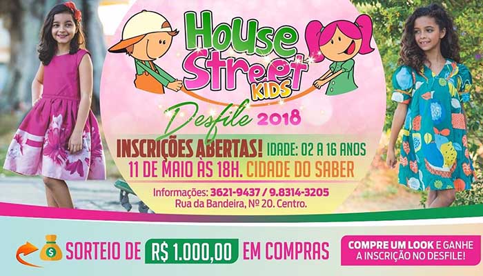 O desfile da House Street Kids promete agitar não só Camaçari, mas toda Região Metropolitana. O evento, que tem como tema “O Jardim Encantado”, acontece no dia 11 de maio, às 17h, no Foyer do Teatro Cidade do Saber, e já está com inscrições abertas. Para desfilar, a criança ou adolescente precisa ter entre 2 e 16 anos, podendo ser inscritos meninas e meninos.