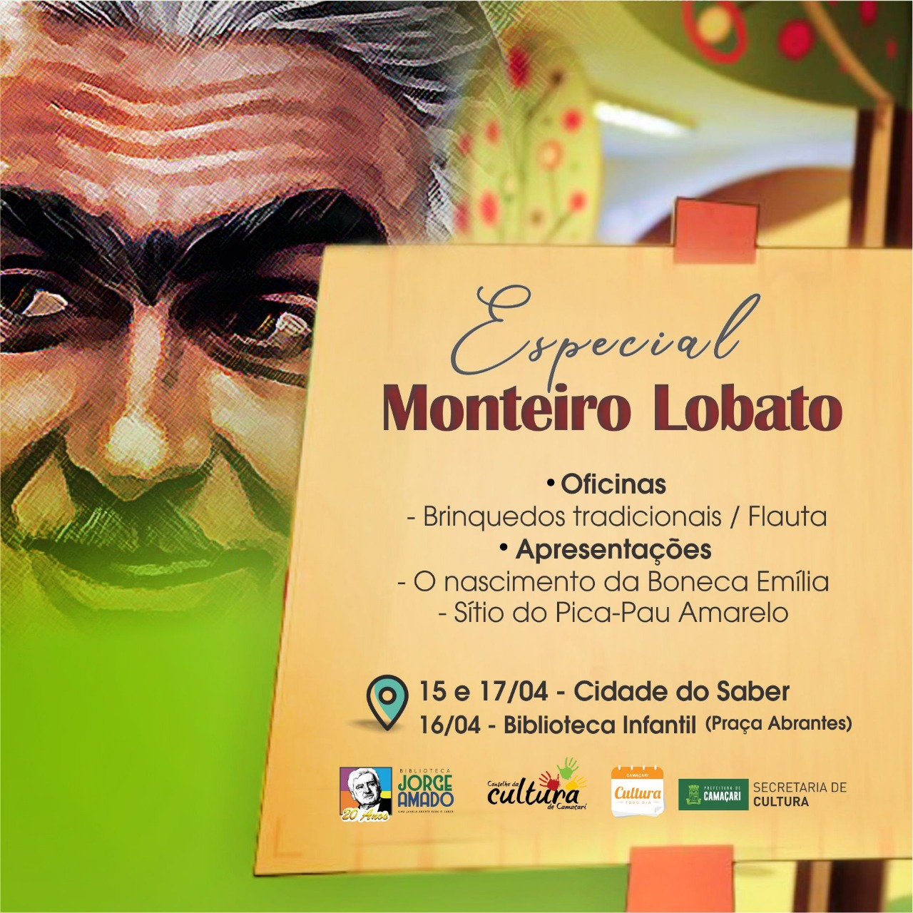 Comemorado no dia 18 de abril, o Dia do Livro será celebrado em Camaçari, de 15 a 17 de abril, com apresentações artísticas e oficinas literárias e musicais, em homenagem a Monteiro Lobato, escritor que tanto se dedicou à literatura infantil no Brasil. O Especial que objetiva estimular a leitura, a criatividade e a expressão corporal, ocorrerá na Cidade do Saber e na Biblioteca Infantojuvenil Monteiro Lobato, na Praça Abrantes, com acesso gratuito.