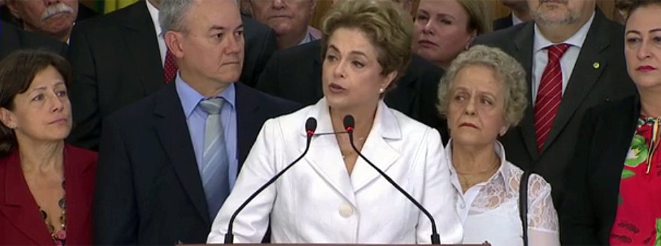 “O que está em jogo no processo de impeachment não é apenas meu mandato. Está em jogo o respeito às urnas, à vontade soberana do povo brasileiro e a Constituição. O que está em jogo são as conquistas dos últimos 13 anos, os ganhos das pessoas mais pobres e da classe média, a proteção às crianças, os jovens chegando às universidades e escolas técnicas, a valorização do salário mínimo, médicos atendendo a população, a casa própria com o Minha Casa Minha Vida”, afirmou Dilma em pronunciamento.