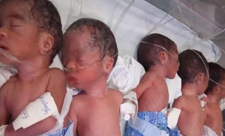 O médico que liderou o parto, Dr. Tekam, disse ao ‘Mirror’ que aquele foi o primeiro caso da sua carreira. “Essa foi a primeira vez que vi cinco crianças nascerem de parto normal”.
