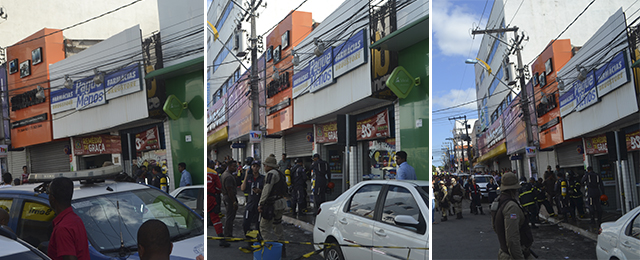 Á área foi isolada, as lojas foram fechadas e uma multidão acompanha o trabalho da polícia e corpo de bombeiros em torno da Praça Abrantes.