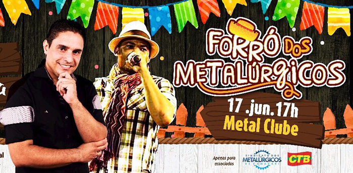Atrações como Edy Xote, Virado no Setenta e Trio Forrozeiro animam o arrasta pé no Forró dos Metalúrgicos que acontece dia 17 de Junho, a partir das 17h, no Metal Clube, em Jauá.
