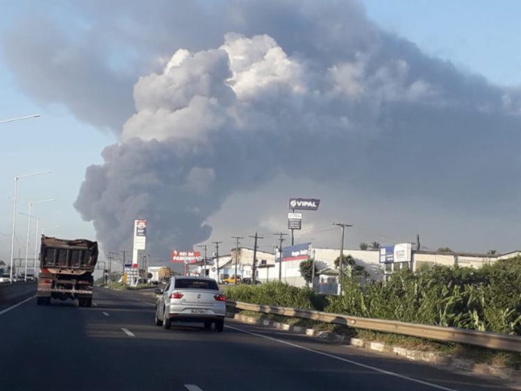 Um incêndio de grandes proporções atingiu uma fábrica de colchões, localizada no bairro de Valéria, em Salvador, na manhã desta terça-feira, 19.
