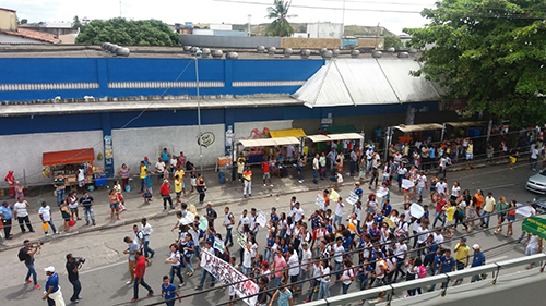 Com cartazes, grito de guerra e muita vontade de protestar, um grupo de estudantes realizou uma manifestação no centro da cidade, durante a manhã de hoje (23). A manifestação ocorreu, porque segundo eles, a empresa concessionária que administra o Camaçari Card, que dá direito a passagem no transporte público do município, está apresentando dificuldades no recadastramento do cartão.
