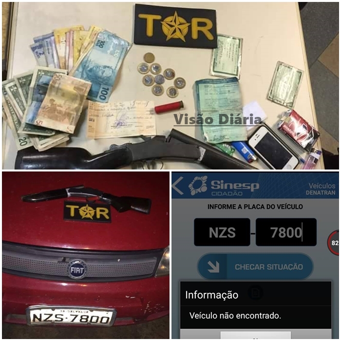 Após abordagem de rotina, os policiais verificaram que o veiculo conduzido por Maurício, um Fiat Pálio tinha a placa fria, ou seja, era roubado e estava com placa adulterada.