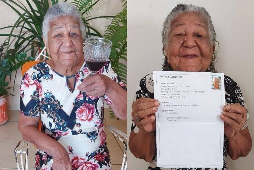 Maria Cardoso, uma idosa de 101 anos, viralizou na internet após entregar um currículo em uma empresa do interior de São Paulo. Com muita determinação, ela explicou sua motivação: “Eu quero trabalhar para comprar meus vinhozinhos, minha carninha, para não depender só da filha, e ajudar um pouco.”