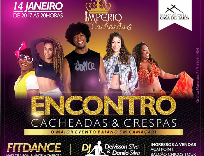 No dia 14 de janeiro, Camaçari recebe um grande evento voltado para as mulheres crespas e cacheadas, na Casa de Taipa. O Império das Cacheadas é um projeto motivacional que tem como objetivo estimular as mulheres a sair do mundo dos produtos químicos e valorizar a beleza natural feminina.