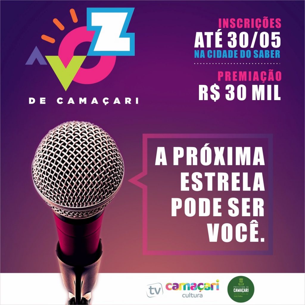 As inscrições para a primeira edição do Concurso Cultural A Voz de Camaçari, realizado pela Prefeitura Municipal, seguem até o dia 30 de maio. O vencedor do concurso ganhará um prêmio no valor bruto de R$ 30 mil.