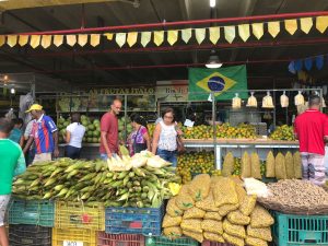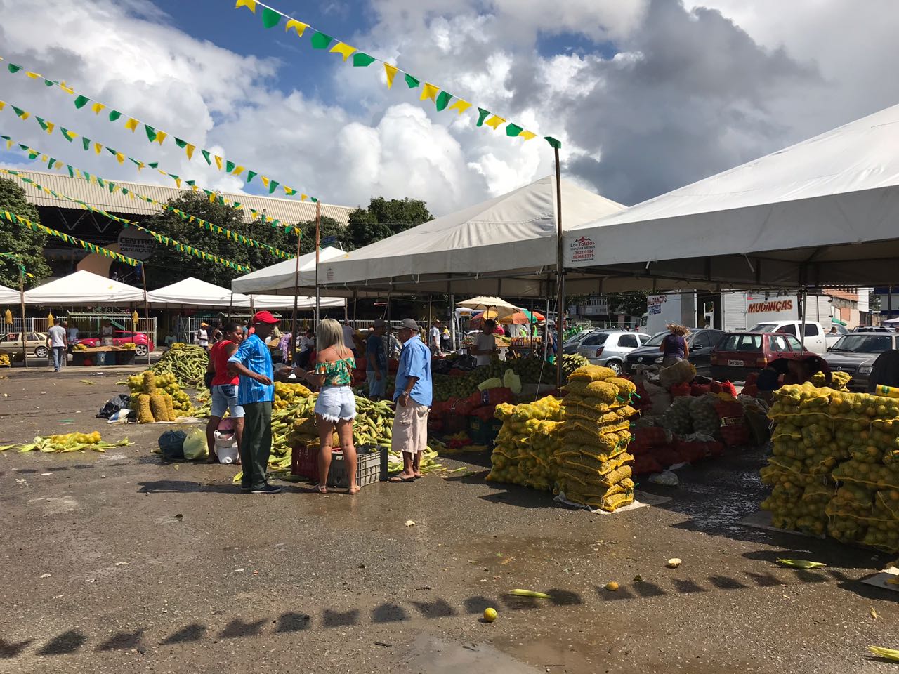 No espaço estão sendo disponibilizados cerca de 200 pontos de vendas, onde os permissionários do setor de hortifruti do Centro Comercial estão expondo produtos como milho, laranja, licor, amendoim, aipim, coco, carimã, entre outros itens característicos da culinária junina.