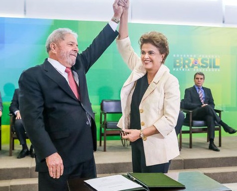 O ex-presidente Luiz Inácio Lula da Silva tomou posse na manhã desta quinta-feira (17) como ministro da Casa Civil, em cerimônia realizada no Palácio do Planalto. Sob os gritos de ‘não vai ter golpe’, Lula assinou o termo de posse acompanhado da presidente Dilma Rousseff, de Eugênio Aragão, que assumiu o ministério da Justiça, e de Mauro Lopes, que tomou posse na Aviação Civil. O ex-governador Jaques Wagner, tomou posse no Gabinete Pessoal, mas se atrasou para a cerimônia.