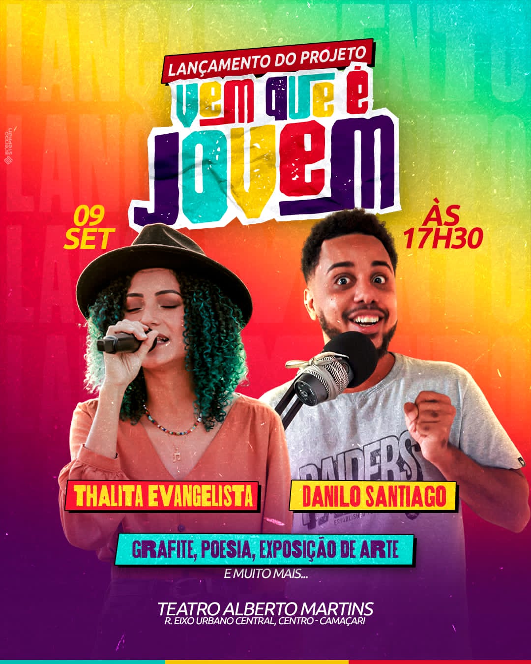 O projeto tem como objetivo integrar o jovem à sociedade e buscando garantir seus direitos por meio da ocupação artística e cultural, da educação, esporte e assistência social. “Vem que é Jovem” é uma Organização Não Governamental e sem fins lucrativos (ONG), que nasceu pra contribuir, junto ao Estado e à Sociedade Civil, na construção de uma sociedade mais justa para os jovens. A inauguração contará com a show musical de Thalita Evangelista e com apresentação do ator e comediante, Danilo Santiago, além de intervenções de grafite, poesia, exposições artísticas e muitas outras atrações.