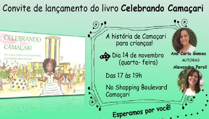 A história de Camaçari para crianças, contada no livro Celebrando Camaçari, pode ser adquirida no lançamento oficial que acontece dia 14, das 17h às 19h, no Shopping Boulevard Camaçari. O livro foi escrito pelas professoras Ana Carla Gomes e Alexandra Persil e organizado pela professora Claudia Opa, que atuam na Rede Pública de Ensino de Camaçari.