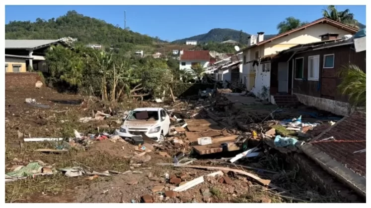 Nos últimos oito meses, o município que fica às margens do Rio Taquari enfrentou três grandes eventos climáticos ligados a fortes chuvas. O rio está acima do nível de sua capacidade de transbordamento e começou a subir no final do mês passado com o aumento das chuvas. Atualmente, a cidade precisará ser reconstruída e diversos moradores mudarão de endereço.