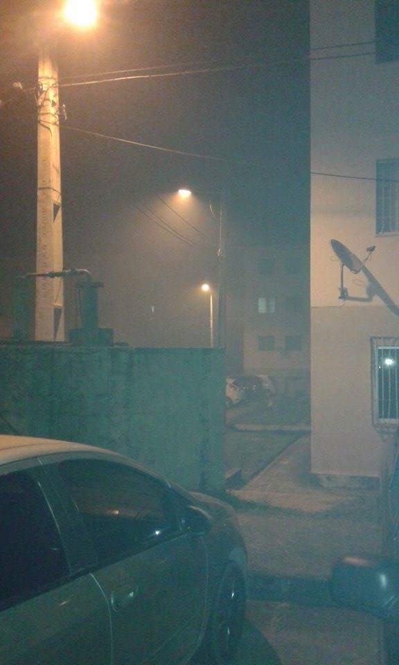 As fotos abaixo foram publicadas pelos moradores em uma rede social. Elas mostram como fica o condomínio quando a cerâmica solta a referida fumaça.