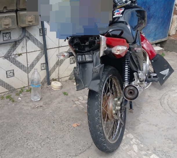 Policiais militares da 59ª CIPM apreenderam uma motocicleta sem placa e com chassi raspado, na tarde desse sábado (19), em Camaçari.