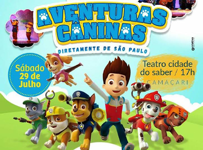 Com uma produção de quatro trocas de cenários, efeitos especiais e iluminação cênica, chega a Camaçari pela primeira vez, no próximo dia 29 de julho, às 17h na Cidade do Saber, o Musical Aventuras Caninas.