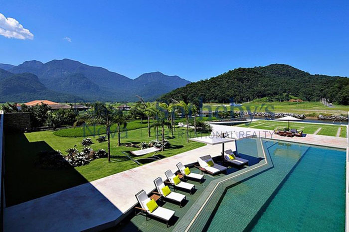 Localizada no condomínio Portobello – em um terreno de 10 mil m² -, a propriedade possui seis suítes, heliponto, quadra de tênis, espaço gourmet, adega subterrânea climatizada com capacidade para três mil garrafas, spa com jacuzzi aquecida, sauna a vapor, sala de massagem, sistema de som integrado, uma moderna academia e vaga para lancha de grande porte.