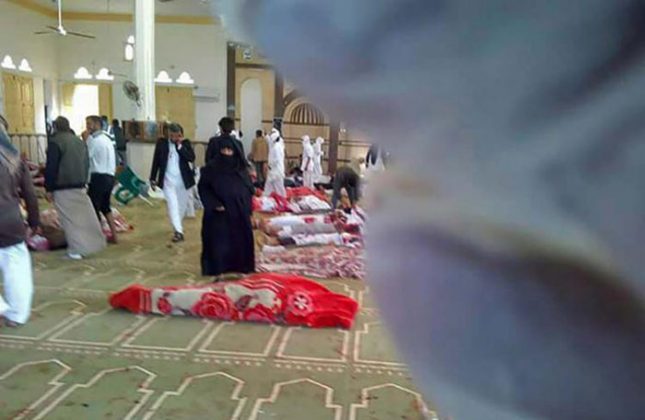 Os autores do ataque detonaram uma bomba na mesquita Al Rawda, na cidade de Be’r Al Sabea, a oeste da cidade de al-Arish, informou a imprensa estatal, antes de disparar nas pessoas que tentavam fugir. Várias ambulâncias foram atacadas enquanto tentavam resgatar feridos, informou a televisão estatal.