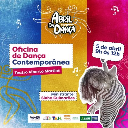 Nesta quarta-feira (5/4), das 9h às 12h, será realizada no Teatro Alberto Martins a Oficina de Dança Contemporânea, com entrada gratuita. A atividade marca a abertura da programação da Secretaria da Cultura (Secult) do Abril da Dança, contando com recursos da Lei Aldir Blanc.