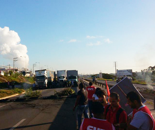 Manifestações de centrais sindicais representantes de diversas categorias bloquearam, na manhã desta sexta-feira (29), os dois sentidos da Via Parafuso (BA-535), no km 10 da rodovia, trecho em frente ao Atacadão.