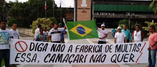 Indignados com a quantidade e frequência das multas aplicadas ultimamente no município, a população realizou uma manifestação nesta quinta (1º), em frente a prefeitura de Camaçari com o objetivo de cobrar do prefeito Antônio Elinaldo (DEM), um decreto anulando todas as multas ilegais aplicadas.