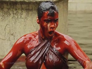 A transformação da água em sangue é a primeira das dez pragas enviadas ao Egito, na próxima semana a novela deve mostrar a invasão de rãs.