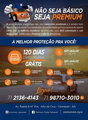 Não seja básico, seja Premium! São inúmeras as vantagens, como :120 dias de carro reserva, roubo, furto , incêndio , perda total … entre outros.