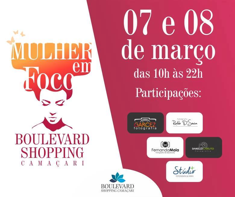 Nos dia 7 e 8 de Março, Os fotógrafos Fernanda Maia, Raildo Sousa , Danillo Canuto e Garcez estarão no Boulevard Shopping Camaçari, realizando uma ação em homenagem ao Dia Internacional da Mulher.