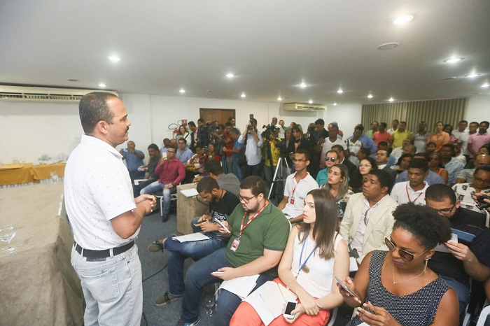 O prefeito eleito de Camaçari, Elinaldo Araújo, recebeu nesta segunda-feira (28), a imprensa para uma coletiva. Na ocasião, foram apresentadas medidas que visam reduzir os gastos da máquina pública com a extinção de sete secretarias a partir do próximo ano. A reestruturação administrativa pretende gastar menos com a prefeitura e mais com o cidadão, segundo informações prestadas na coletiva desta tarde, no Camaçari Plaza Hotel.