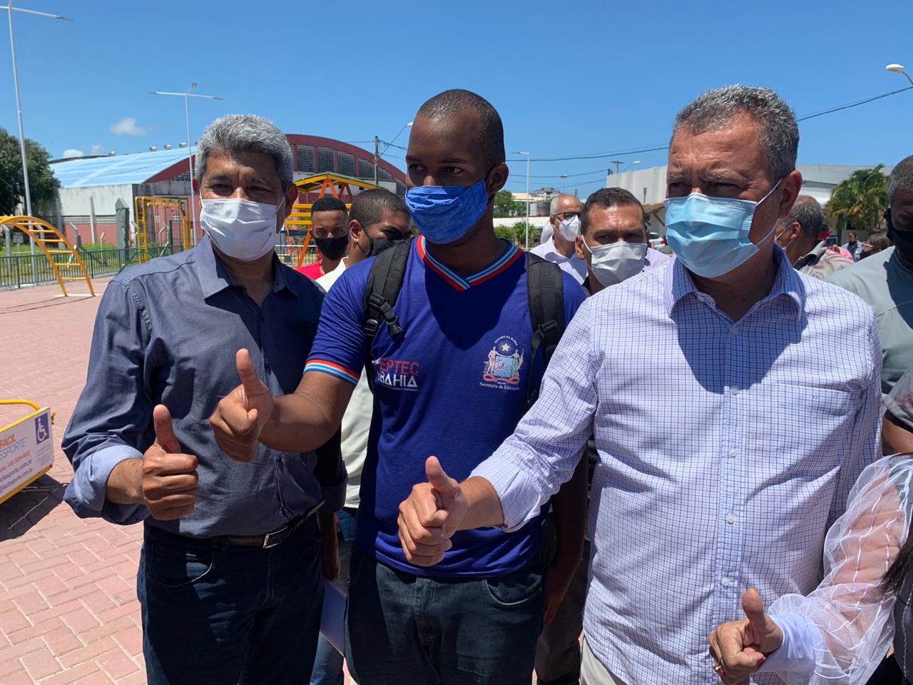 Em agenda no município de Lauro de Freitas, na Região Metropolitana de Salvador (RMS), nesta sexta-feira (23), o governador Rui Costa, acompanhado pelo secretário da Educação do Estado, Jerônimo Rodrigues, anunciou a construção de duas novas escolas em Lauro de Freitas, com investimentos de R$ 35 milhões. Na oportunidade, os gestores visitaram o terreno onde será construída a nova escola que atenderá a comunidade escolar do Centro Estadual de Educação Profissional em Tecnologia da Informação e Comunicação (CEEP-TIC). A outra unidade escolar será no bairro de Portão.
