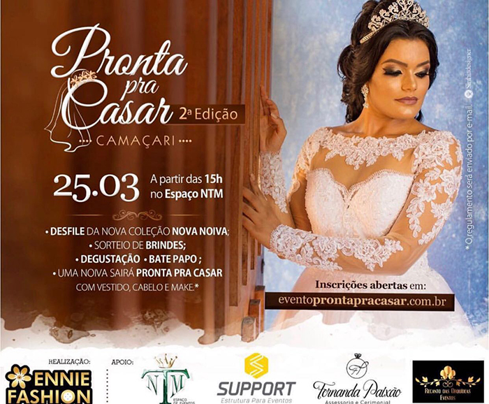 A partir das 15h deste domingo (25), as futuras noivas terão um encontro marcado com um dos maiores eventos do segmento da região. A segunda edição do “Pronta pra Casar”, realizado pela Ennie Fashion, acontece no Espaço de Eventos NTM, em Camaçari.