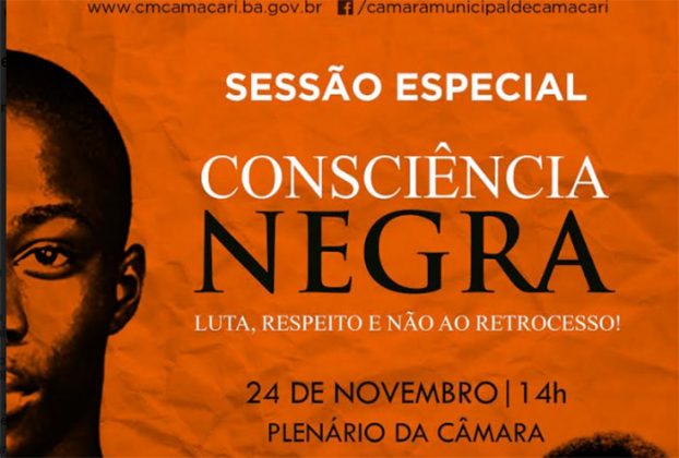 A Câmara Municipal de Camaçari irá realizar nesta sexta feira, 24 de novembro, a partir das 14h, uma Sessão Especial para prestigiar o Dia da Consciência Negra, cujo tema será “Luta, Respeito e Não ao Retrocesso”.