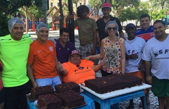 A cantora Solange Almeida aproveitou a folga no fim de semana de Páscoa para participar de uma ação solidária em Fortaleza. Junto com alguns parceiros, a vocalista do Aviões do Forró foi às ruas para distribuir almoço, água e chocolate.