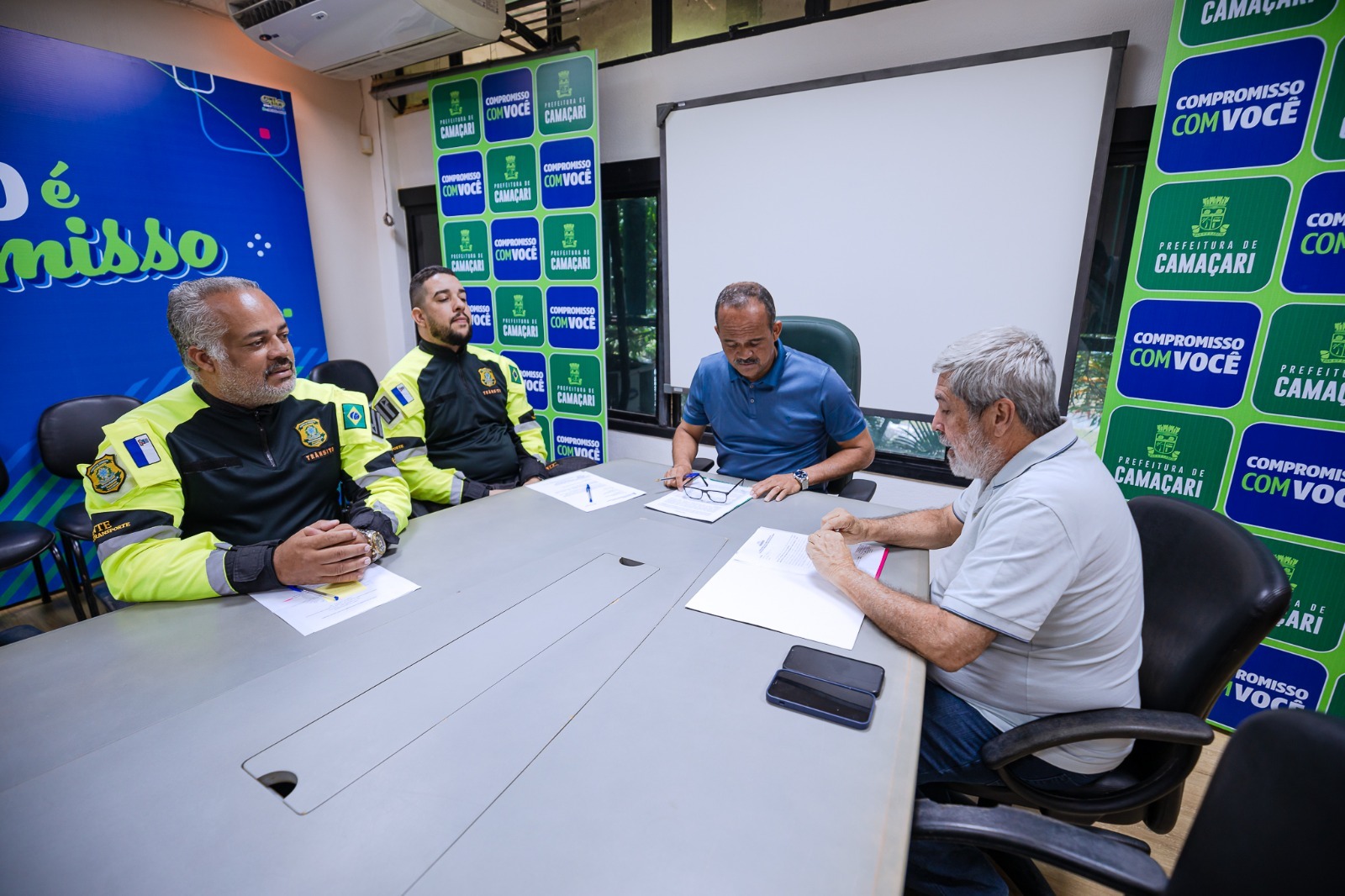 Com o objetivo de tratar sobre o andamento das instalações dos 15 conjuntos semafóricos, o prefeito Elinaldo Araújo recebeu, na manhã desta quarta-feira (11/10), o gestor da Superintendência de Trânsito e Transporte Público (STT) de Camaçari, Helder Almeida, que, na ocasião, também explicou sobre as intervenções realizadas durante a remoção de equipamentos antigos em locais estratégicos da costa e sede do município.