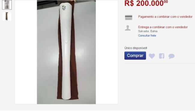 Uma Tocha que teria sido usada por um condutor de Arapiraca, em Alagoas, é vendida a R$ 20 mil, valor que pode ser parcelado em 12 vezes sem juros de R$ 1.666. Outras ofertas oferecem o símbolo olímpico com ou sem o uniforme oficial utilizado no tour de revezamento. Já um vendedor baiano colocou o objeto à venda por R$ 200 mil.