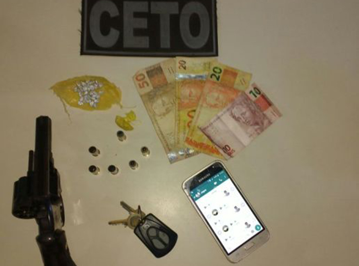 Com o casal e a vítima, a polícia encontrou 29 pedras de crack, um celular roubado, um revólver Cal. 38 e seis munições, destas, três deflagradas contra os policiais da CETO durante a ocorrência.